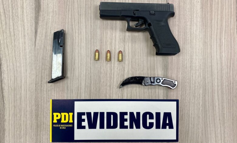 Al respecto, el Comisario Rodrigo Burgos de la Biro Valdivia, detalló que “luego de una llamada telefónica al número de emergencias 134 donde vecinos manifestaban que dos individuos circulaban por la vía pública exhibiendo y ostentando un arma tipo pistola, Detectives de esta unidad concurrieron de manera rápida y oportuna hasta el lugar, logrando dar con la ubicación de los individuos y al controlarlos, hallaron entre las vestimentas del mayor de edad, un arma aparentemente de fuego tipo pistola color negro, tres municiones calibre 9mm, mientras que el menor de edad mantenía un arma corto punzante, procediendo a la detención de ambas personas”.