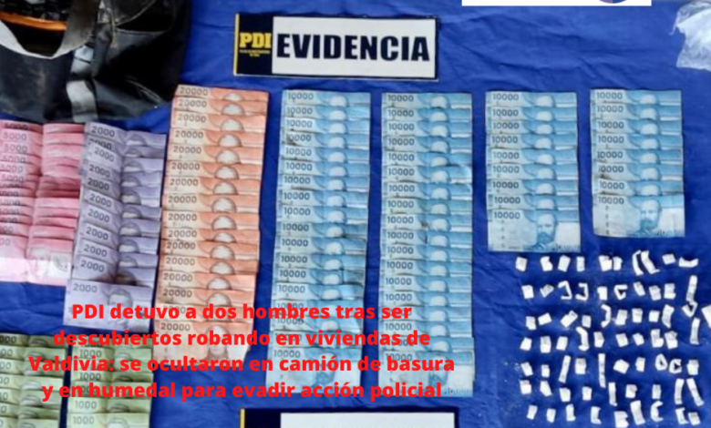 Al respecto, el subcomisario Fabian Arriaza, de la BIRO Valdivia, detalló que “la mañana de este miércoles, gracias a un llamado telefónico de parte de vecinos del sector Las Gaviotas de Valdivia, quienes daban cuenta que dos sujetos desconocidos movilizados en un vehículo se encontraban sustrayendo especies en una vivienda del sector, Detectives de esta unidad concurren rápidamente hasta el lugar, efectuando un rastreo por las inmediaciones del Sitio de Suceso, logrando visualizar ocultos en un camión recolector de basura a dos sujetos con idénticas características a las descritas por testigos, los que al percatarse de la presencia de la PDI, se dieron a la fuga, siendo detenidos finalmente mientras se encontraban ocultos y sumergidos en un Humedal ubicado en calle Picarte con Callejón Las Parras”.