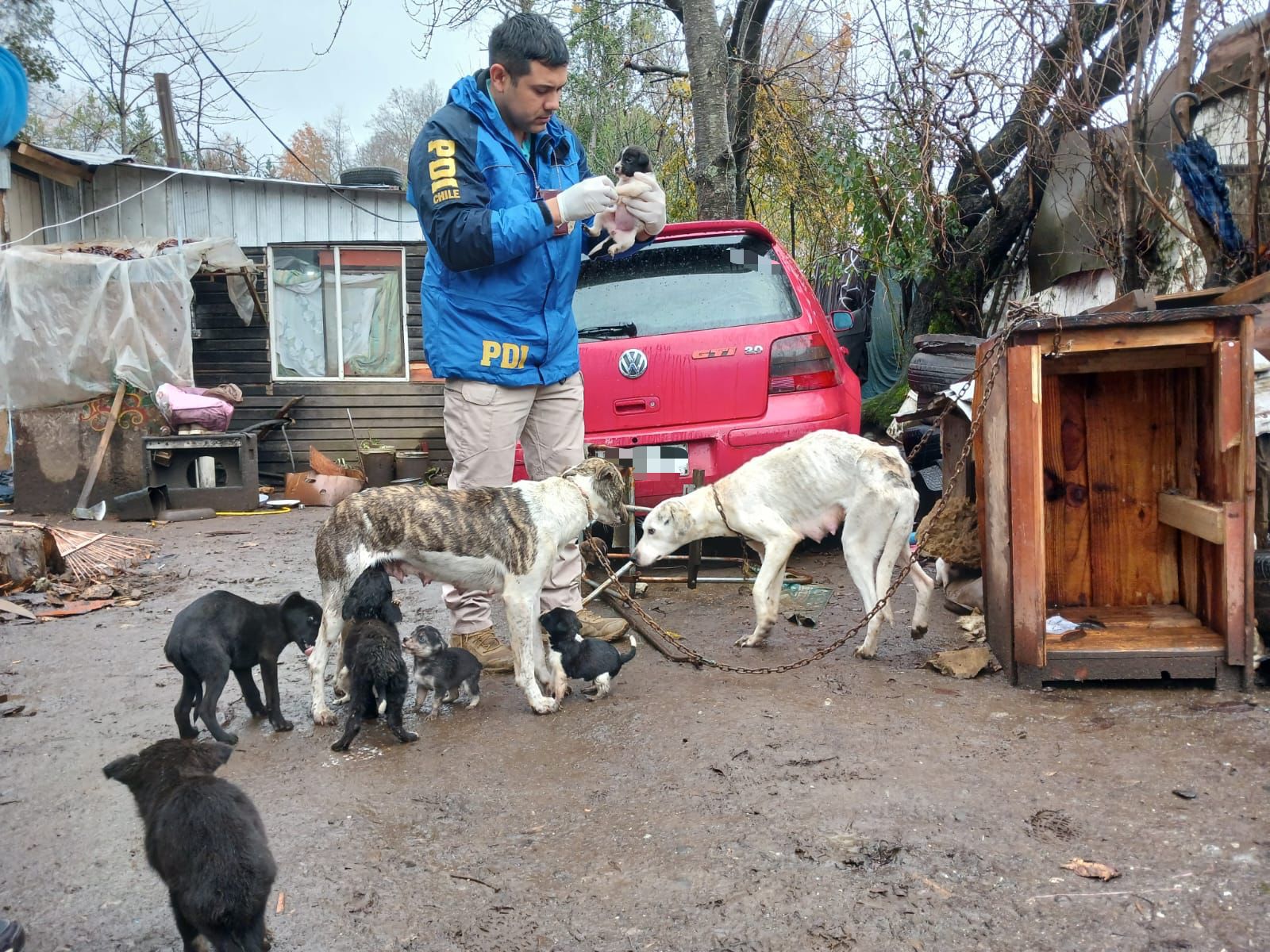 Detectives de la Brigada Investigadora de Delitos Contra el Medio Ambiente y Patrimonio Cultural (BIDEMA) de la PDI Valdivia, detuvieron este jueves en la comuna de Panguipulli, a un hombre por el delito de maltrato animal, quien tenía en su vivienda en el sector de Huellahue, comuna de Panguipulli, a 19 perros en precarias condiciones sanitarias y desnutrición.