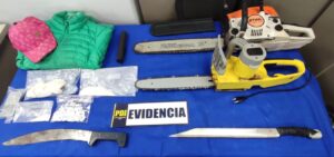 En cuanto a las especies, los Detectives lograron recuperar una sierra eléctrica, una motosierra, diversas prendas de vestir e incautar 177.59 gramos de cocaína base con elementos para su dosificación.
