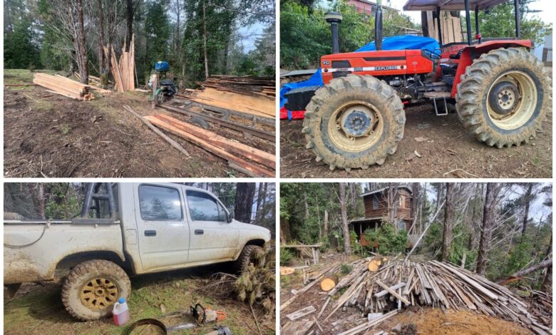 Respecto a lo incautado se trata de alrededor de 50 arboles de pino de 30 metros de altura cada uno, los cuales fueron talados en el predio, un tractor, una camioneta y una motosierra, todo con un avaluó superior a los 26 millones de pesos.