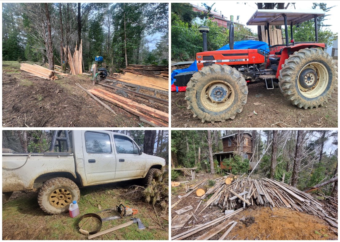 Al respecto, el subprefecto Cristian Muñoz, de la BICRIM Valdivia, detalló que “detectives de esta unidad, en diligencias por el delito de Sustracción de Madera y Usurpación, luego de un trabajo investigativo en conjunto con el Ministerio Público y Bienes Nacionales, este miércoles logramos la ubicación de un hombre, quien sin contar con autorización respectiva, usurpó un predio de propiedad de Bienes Nacionales, donde construyó una vivienda y además instaló un aserradero portátil con el cual elaboraba madera que a su vez talaba desde el mismo predio, comercializándola posteriormente, faenas para la cual utilizaba una camioneta y un tractor, siendo detenido por el delito flagrante de Sustracción de Madera y Usurpación”.