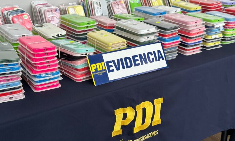 PDI incauta más de 600 carcazas de teléfonos por delito de propiedad industrial en Valdivia