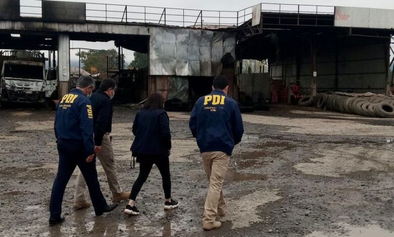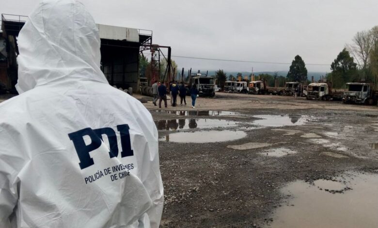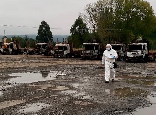 PDI investiga ataque incendiario que dejó 19 camiones destruidos en Mariquina