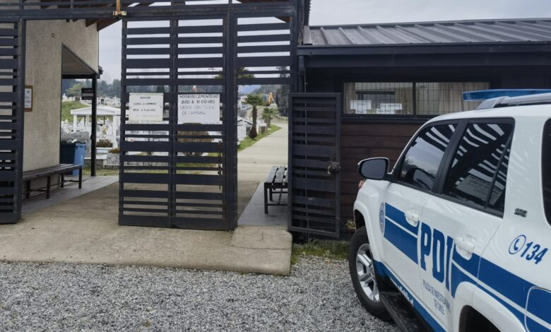 Detectives de la Brigada de Homicidios y peritos del Laboratorio de Criminalística Regional Valdivia investigan el hallazgo de osamentas humanas, ubicadas al interior de uno de los patios del Cementerio Municipal N° 1 de Los Lagos.