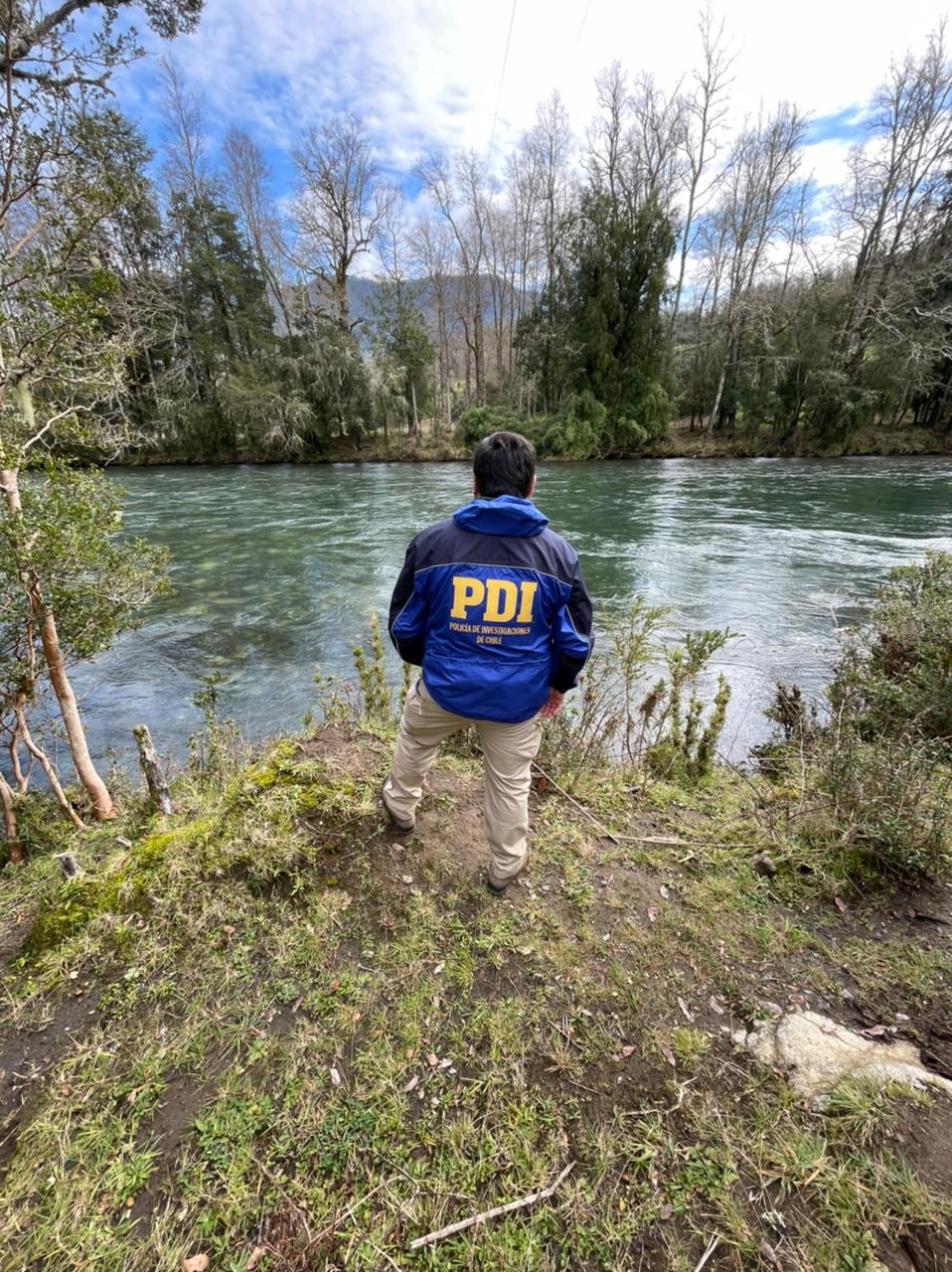 PDI realiza diligencias en sector del Lago Maihue y río blanco en Futrono, buscan indicios que permitan encontrar a César Jaramillo Chocano.