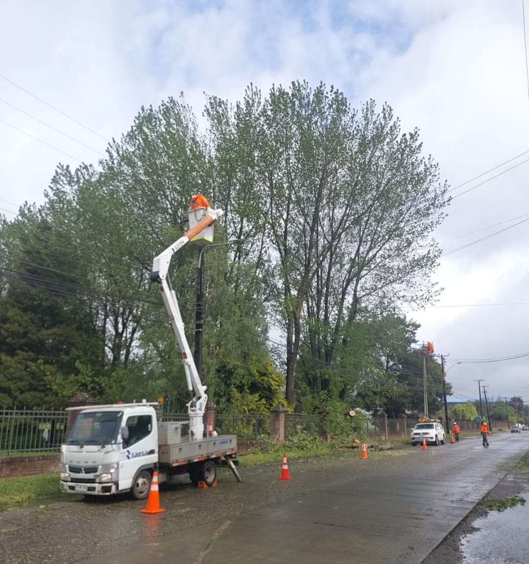 Tras el intenso temporal de viento y lluvia que afecta a la región de Los Ríos, personal de Saesa trabaja en terreno y con brigadas reforzadas, para atender los cortes de energía que se han presentado principalmente por caída de árboles y ramas a las líneas eléctricas.
