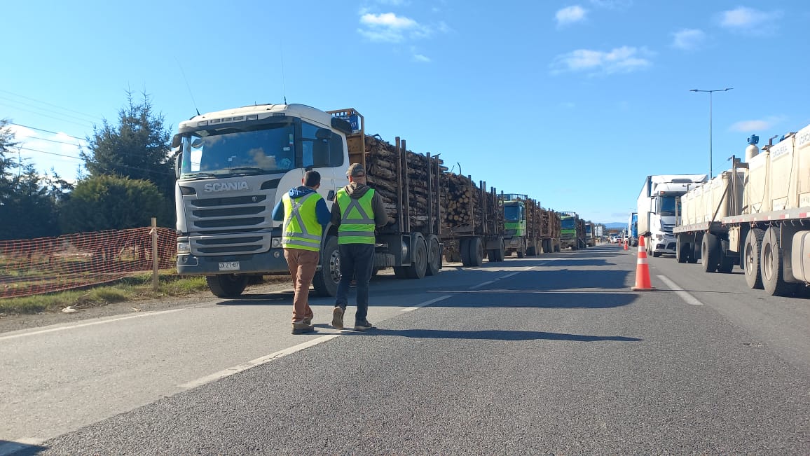 Mariquina: Tránsito intermitente en el Km 785,5 de la Ruta 5Sur, sector Ciruelos. Por segunda jornada, en el lugar trabajadores forestales se manifiestan solicitando mayores condiciones de seguridad para realizar su trabajo. Prefiera vías alternativas.