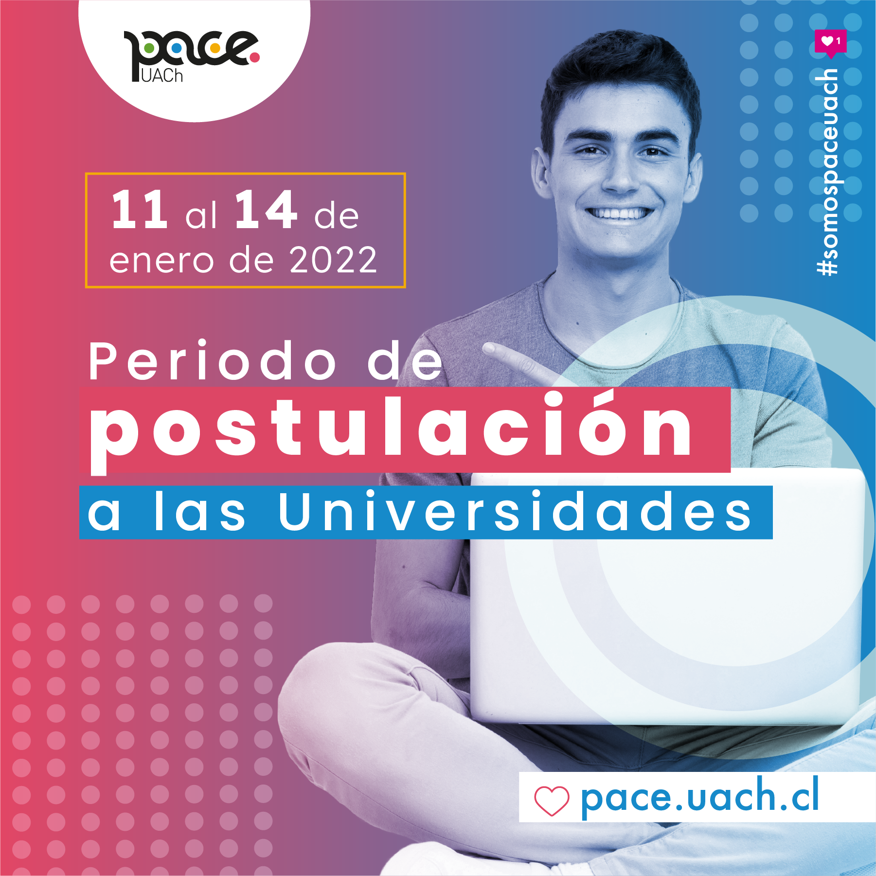 Como parte del acompañamiento en el acceso a la educación superior que el programa PACE declara en sus lineamientos, es que para el período de postulación 2022 a las universidades -comprendido entre el 11 y 14 de enero-, los equipos del programa PACE de la Universidad Austral de Chile desplegarán diversos canales de apoyo y orientación a las y los estudiantes pertenecientes a este programa en las regiones de Los Ríos, Los Lagos y Aysén.