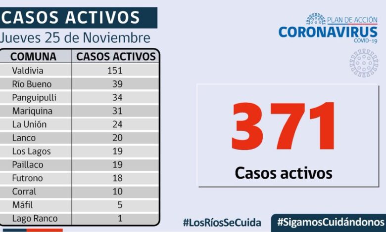 A la fecha en Los Ríos hay 371 casos activos, de los cuales 151 corresponden a la comuna de Valdivia y 39 a la comuna de Río Bueno