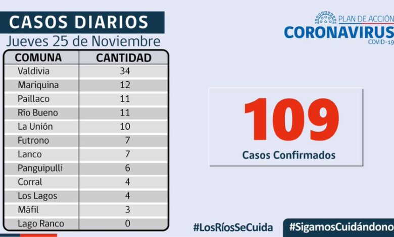 Preocupante cifra de contagios diarios 109 casos confirmados en los Ríos.