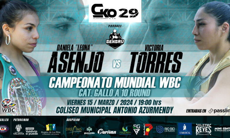 Es así como Ángel “Trewa” Ruiz (52kg) se enfrentará a Bastián Monrroy de Osorno, en la eliminatoria por el título chileno, en la categoría de peso mosca a 10 asaltos. Asimismo, Daniela “La Leona” Asenjo (53kg), actual campeona mundial del Consejo Mundial de Boxeo, defenderá su título contra la mexicana Victoria Torres en la pelea de fondo.