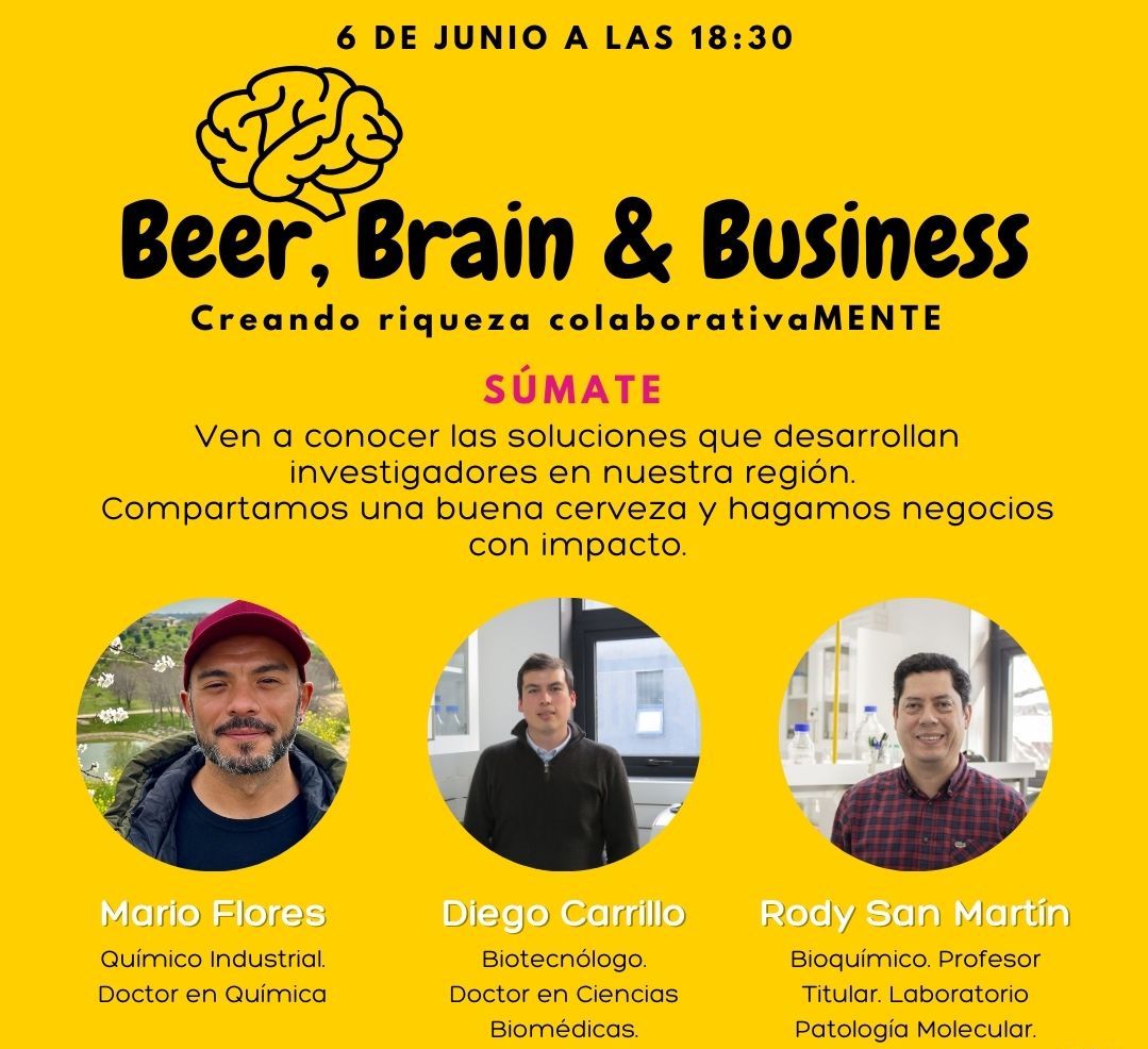 “Beer, Brain & Business” lleva por título este formato de exposiciones científicas breves en un ambiente distendido que busca conectar investigaciones innovadoras con otros emprendedores, empresas e inversores interesados en potenciarlas y sumarse a sus proyectos, jornada que tendrá su primera versión los primeros días de junio.