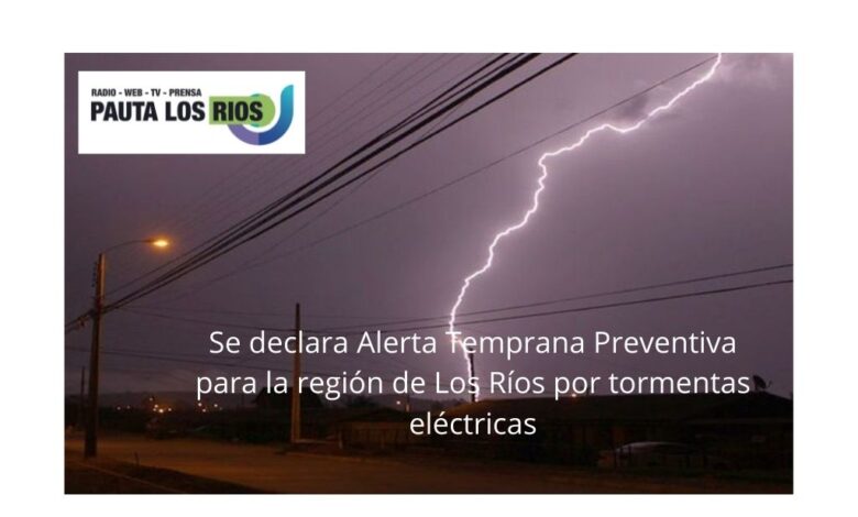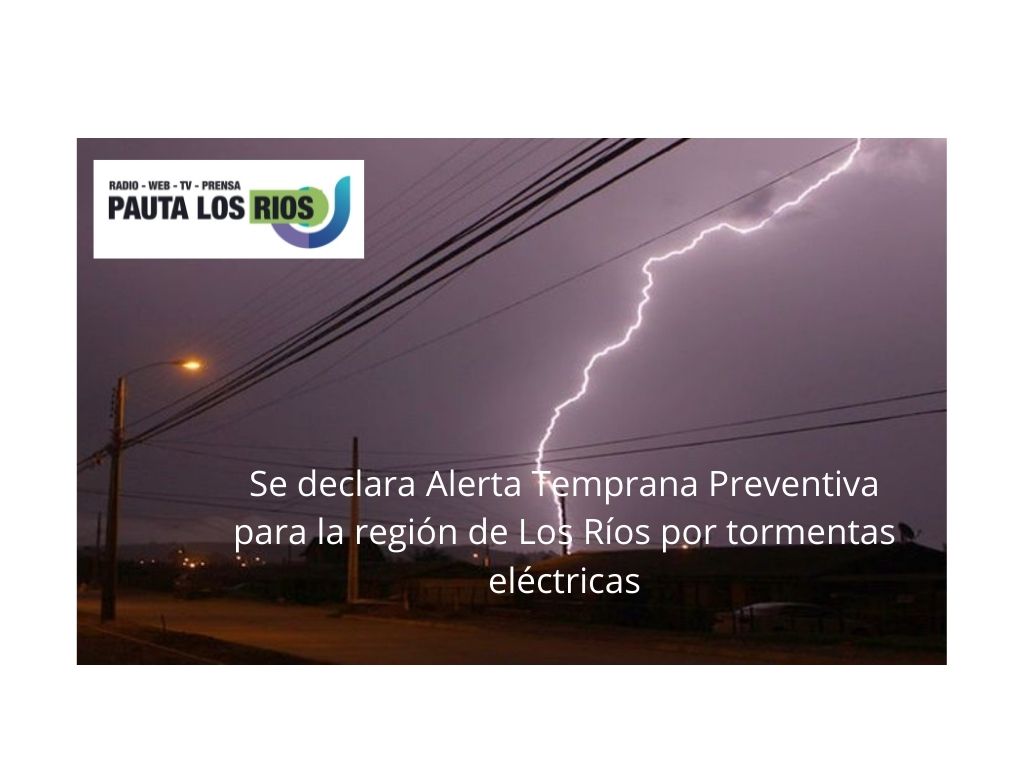 En consideración a este antecedente, que supone un aumento del riesgo asociado a esta variable meteorológica, la Dirección Regional de ONEMI Los Ríos declara Alerta Temprana Preventiva Regional por tormentas eléctricas, vigente desde hoy y hasta que las condiciones así lo ameriten.