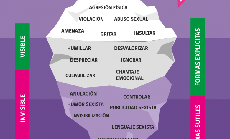 En el “iceberg de la violencia”, hay manifestaciones muchas veces imperceptibles por el entorno, que si no son detectadas o frenadas a tiempo pueden dar paso a la violencia física, es decir a la parte visible del iceberg. Otro aspecto que aborda esta campaña, es que las situaciones que se presentan, tienden a encubrirse bajo las formas de subjetivación del amor romántico, justificadas por considerarse –de forma equivocada- expresiones de amor.