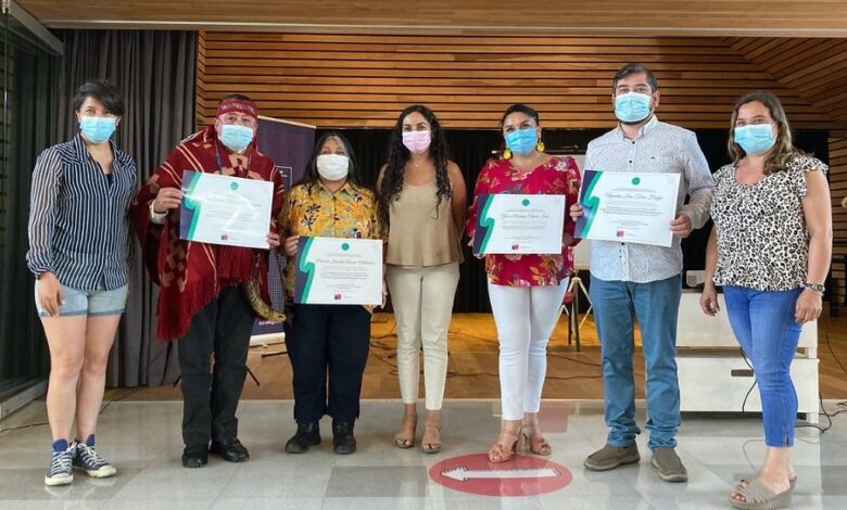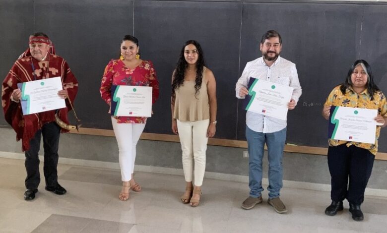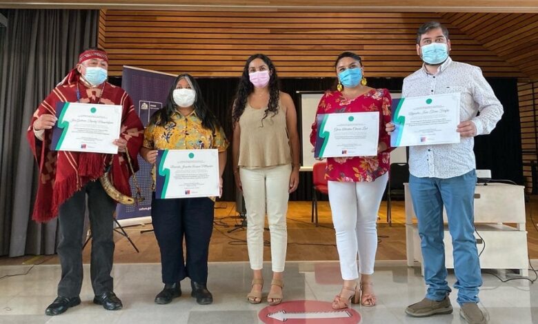 A través de su programa Fortalecimiento de la Identidad Cultural Regional, la Seremi entregó el reconocimiento a Gloria Chacón, Alejandro Torres, Juan Guillermo Tripailaf y Bernarda Aucapan.