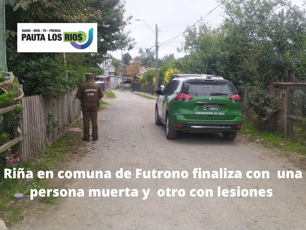 En Futrono, un hombre agredió ayer alrededor de las 13:30 horas con un palo a otros dos hombres, causando la muerte de uno y lesiones (al parecer leves) al otro. El fiscal de turno Carlos Silva instruyó diligencias de investigación a la Brigada de Homicidios de la PDI para el esclarecimiento de los hechos y la identificación del autor del homicidio y las lesiones.