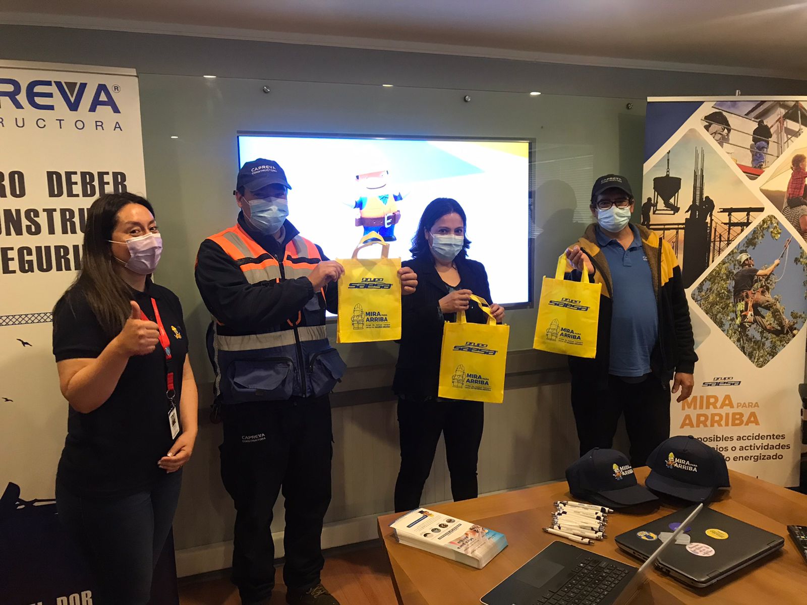 “Mira para Arriba” es el nombre de la iniciativa que lleva adelante Saesa, y cuyo objetivo es proteger a las personas que realizan labores en las cercanías del tendido eléctrico. Por ello, trabajadores de inmobiliaria Capreva, en Valdivia, recibieron información sobre la importancia de mantener una distancia adecuada con las líneas eléctricas al realizar trabajos. “Ante un descuido, por no “Mirar para Arriba”, un trabajador se puede acercar demasiado, lo que puede resultar en un accidente”, explicó Pablo Negrón, jefe de Servicio al Cliente de Saesa en Los Ríos.