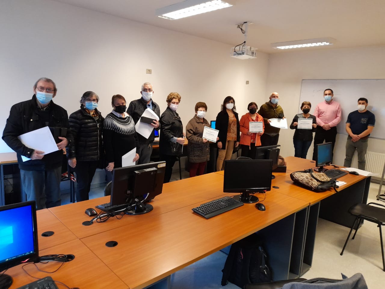 Un grupo de adultos mayores recibieron certificado acreditando su participación en este taller donde pudieron aprender sobre uso correcto de plataformas de video llamadas como Whatsapp o Meet, pago de cuentas por internet, creación de páginas, entre otros.