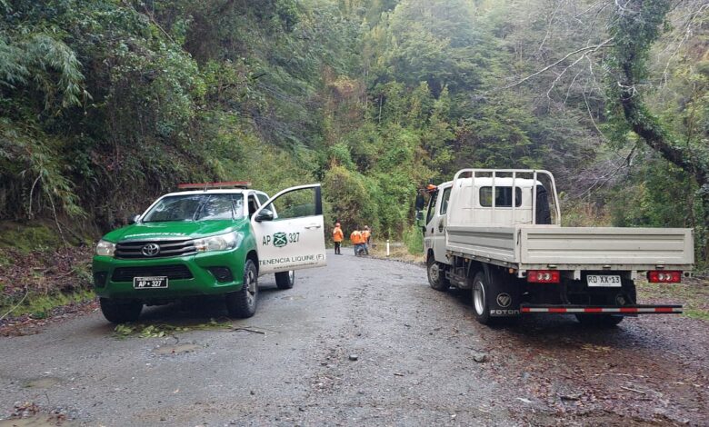 Panguipulli: Ruta T-29, cortada en el km 8 por socavón. Empresa encargada del mantenimiento de la vía se encuentra trabajando para restablecer conectividad. Carabineros de la Tcia (F) #Liquiñe realiza labores de tránsito en el lugar.