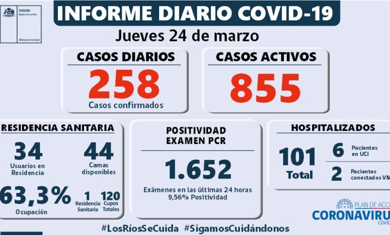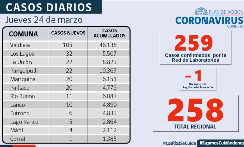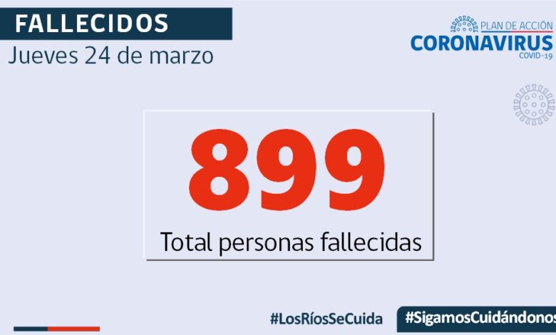 Se informan 899 personas fallecidas en los Ríos , 258 casos nuevos positividad de un 9,56%