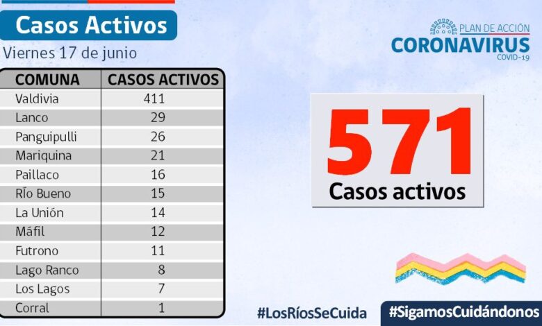 A la fecha, hay 571 casos activos, de los cuales 411 corresponden a la comuna de Valdivia y 29 a la comuna de Lanco.