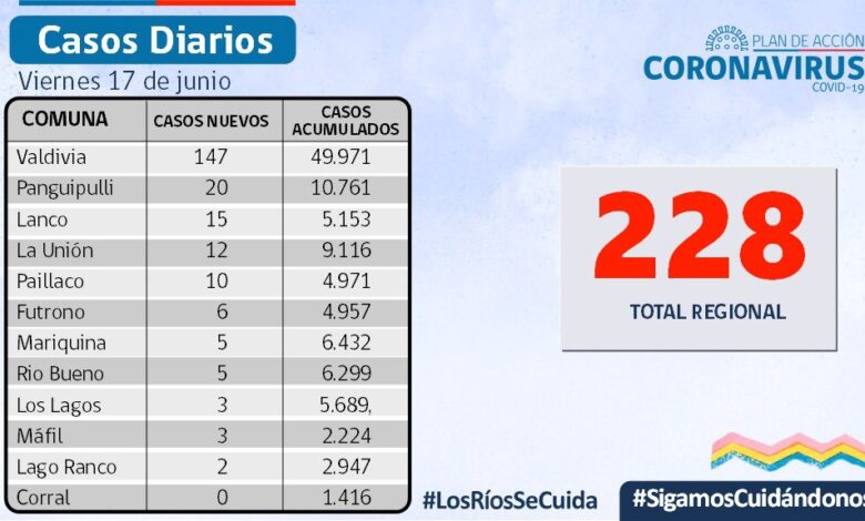 REPORTE] El SEREMI de Salud, Dr. José Llambías, informó que hoy se reportaron 228 nuevos casos de COVID-19 en Los Ríos.
