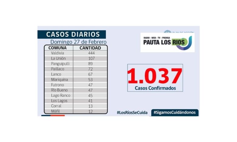 REPORTE] El SEREMI de Salud, Keith Hood, informó que hoy se reportaron 1.037 nuevos casos de COVID-19 en Los Ríos.