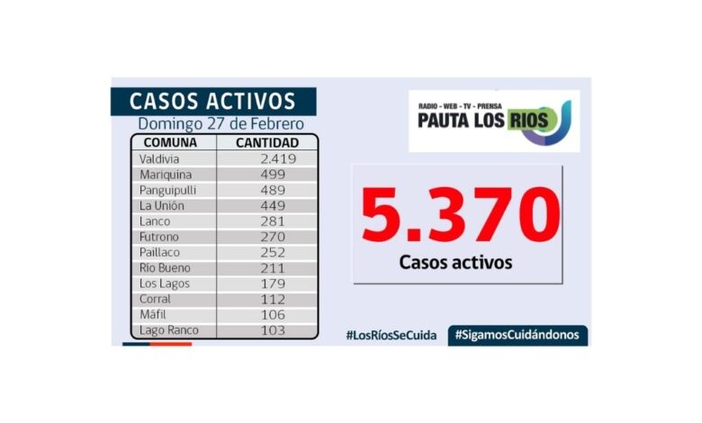 A la fecha, hay 5.370 casos activos, de los cuales 2.419 corresponden a la comuna de Valdivia y 499 a la comuna de Mariquina.
