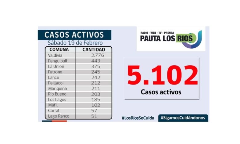 A la fecha, hay 5.102 casos activos, de los cuales 2.776 corresponden a la comuna de #Valdiviacl y 443 a la comuna de Panguipulli.