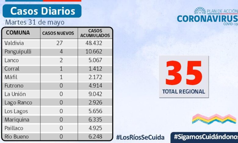 REPORTE] El SEREMI de Salud, Dr.José Llambías, informó que hoy se reportaron 35 nuevos casos de COVID-19 en Los Ríos.