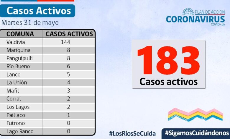 A la fecha, hay 183 casos activos, de los cuales 144 corresponden a la comuna de Valdivia y 8 a la comuna de Mariquina.