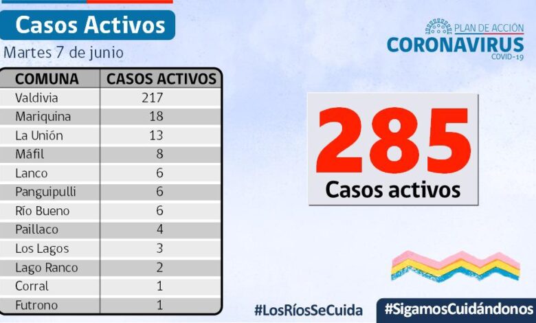 A la fecha, hay 285 casos activos, de los cuales 217 corresponden a la comuna de Valdivia y 18 a la comuna de Mariquina.