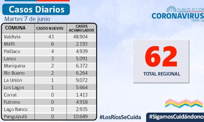 REPORTE] El SEREMI de Salud, Dr.José Llambías, informó que hoy se reportaron 62 nuevos casos de COVID-19 en Los Ríos.