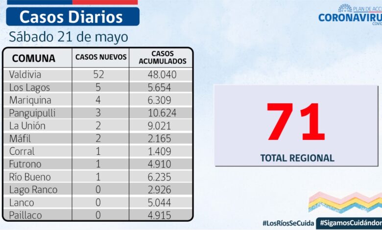 REPORTE] El SEREMI de Salud, Dr.José Llambías, informó que hoy se reportaron 71 nuevos casos de COVID-19 en Los Ríos.