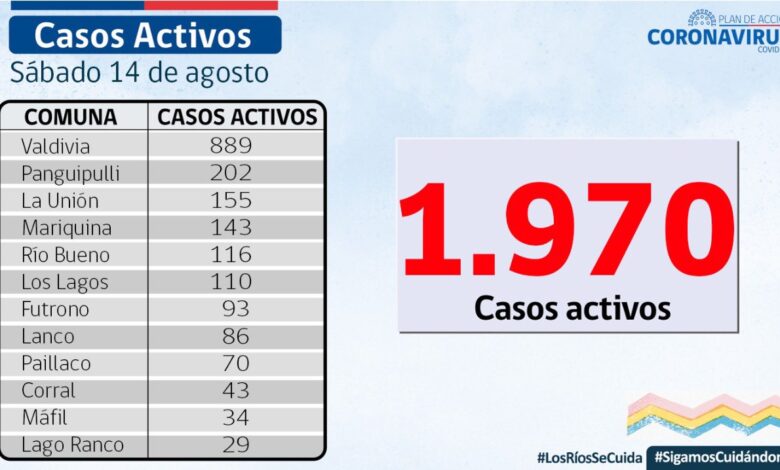 A la fecha, hay 1.970 casos activos, de los cuales 889 corresponden a la comuna de Valdivia y 202 a la comuna de Panguipulli.
