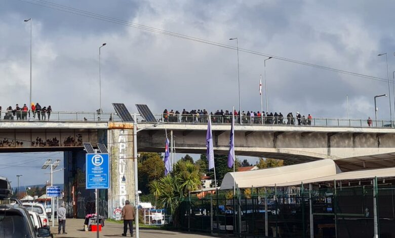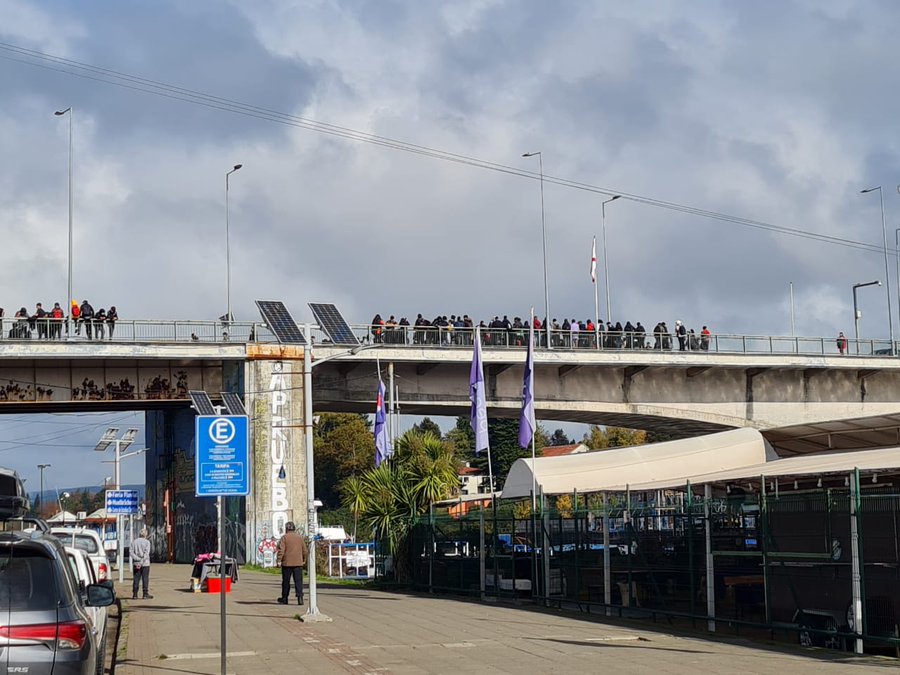 A esta hora estudiantes secundarios bloquean ambas pistas de circulación del Puente Pedro de Valdivia, en la capital de la Región de Los Rios.