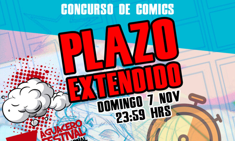 Al respecto, Matías Habert, coordinador de competencias de Aguacero Festival, detalló que la extensión del plazo tiene relación con “permitir que los participantes cuenten con más tiempo para pulir sus obras, o en caso que hayan tenido problemas para hacer llegar sus trabajos lo puedan hacer en los próximos días. El llamado es a participar en el certamen, en donde habrá cuatro categorías. La competencia consiste en presentar comics de una página con técnica y temática libre. Los plazos de entrega son hasta el 7 de noviembre del 2021, a las 23:59 horas en el correo aguacerocompetencia2021@gmail.com Para lectura de bases y toda la información relacionada dirigirse a https://festival.aguacerocomics.cl”.