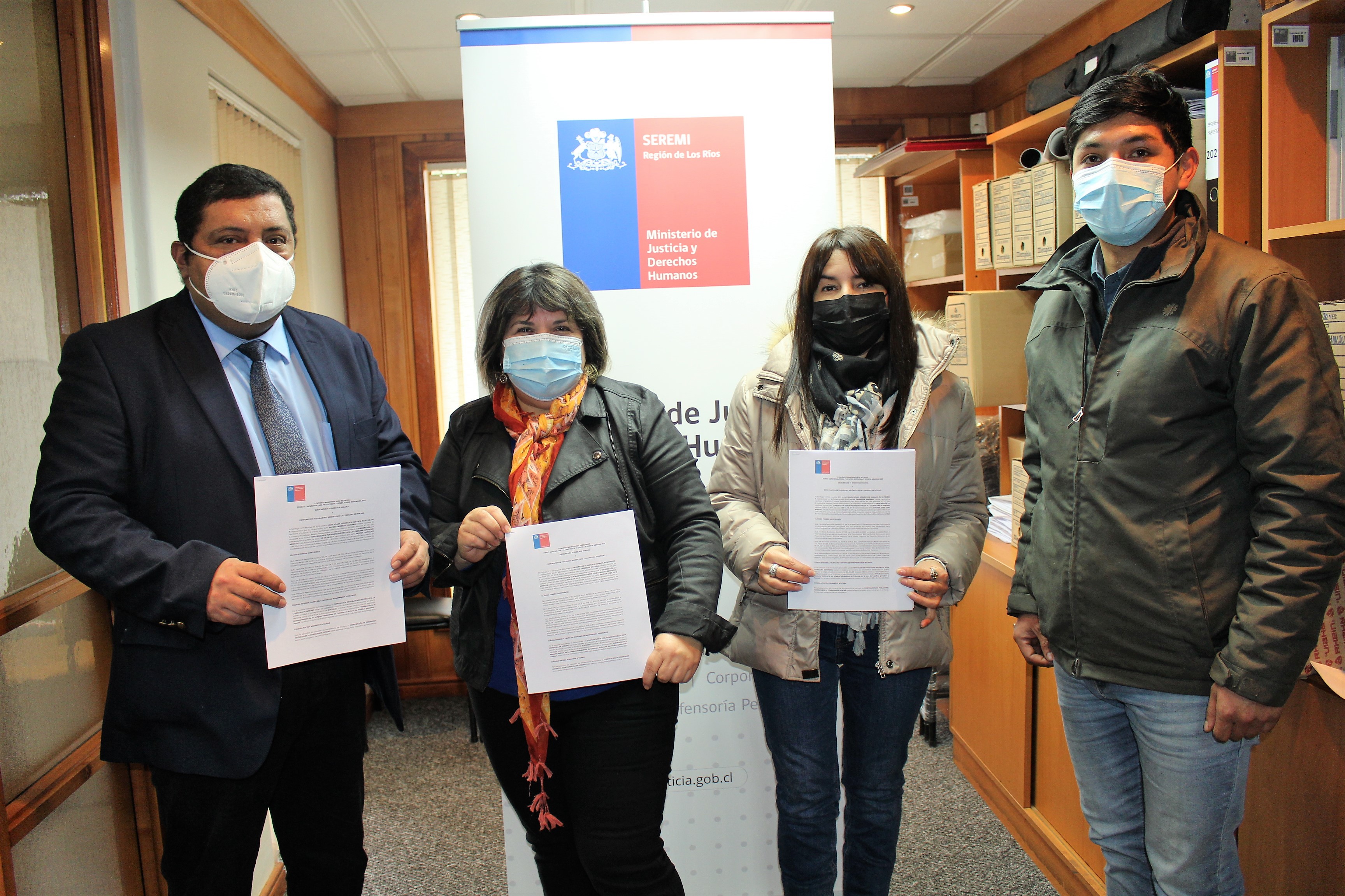 En la seremi de Justicia y Derechos Humanos de Los Ríos, se llevó a cabo la firma del Convenio de Transferencia del proyecto de visibilización de la Memoria Histórica de antiguos trabajadores del Complejo Forestal y Maderero de Panguipulli, y que obtuvo financiamiento a través de un concurso de la subsecretaría de Derechos Humanos.
