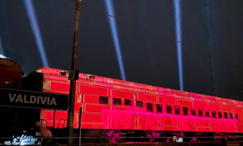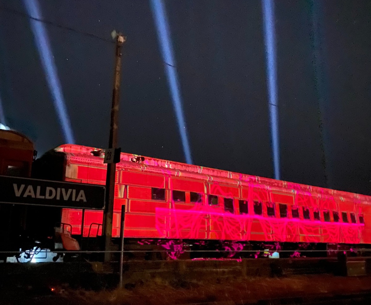 En cuanto al show lumínico, este consistirá en una intervención artística que contempla la proyección a gran escala de piezas audiovisuales -creadas especialmente para esta ocasión- en dos vagones de la Estación de Ferrocarriles, y donde la temática corresponde a un relato histórico sobre los orígenes de este lugar, su transformación posterior al terremoto de 1960, y la vida social y cultural de este emblemático sector. La iniciativa, que es producida por la Productora Terranova, será puesta en escena por los artistas Cubic, Gatovisual y Oreja de Oso.