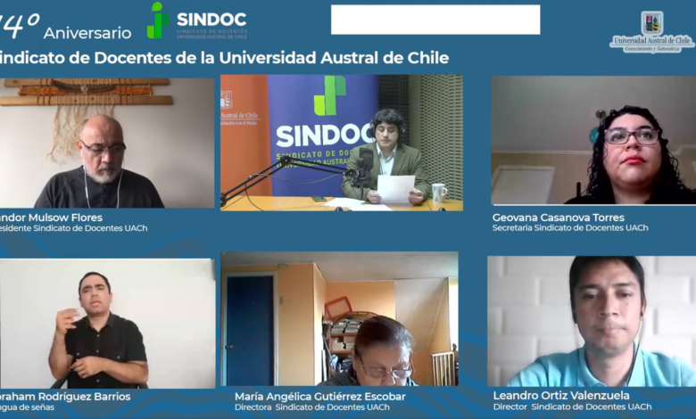 Con una ceremonia On line el Sindicato de Docentes de la UACh celebró su décimo cuarto aniversario, que tuvo como objetivo dar a conocer la historia, sus principales logros y los desafíos para el futuro del sindicato.
