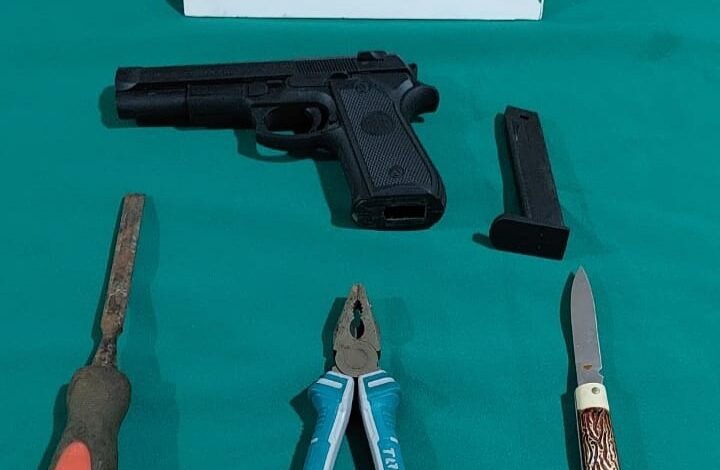 En su poder mantenía cuchillo,alicate, formón y pistola de fantasía.