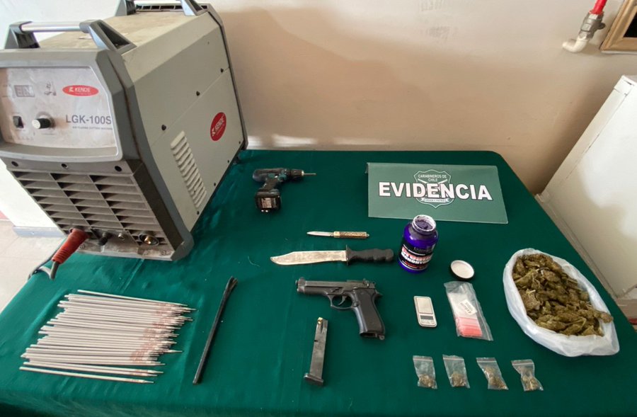 En #Mariquina,Carabineros SIP de 2ªComisaría #LosLagos detuvo a hombre que era investigado por robo a maestranza y cuyas herramientas sustraídas fueron halladas en vehículo que conducía y en su casa,donde fueron incautadas armas blancas,de fantasía y sustancia similares a THC
