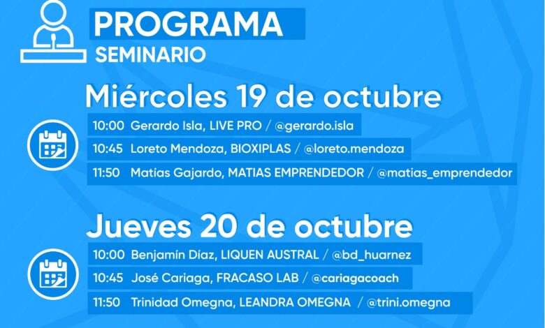 Las inscripciones aun están abiertas desde la cuenta de instagram @muniemprendevaldivia o directamente desde las 08:30 este miércoles y jueves en el Teatro Lord Cochrane