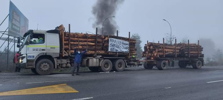 Los manifestantes que le prestan servicios a Forestal Arauco, exigen que se solucionen las peticiones que tienen como sindicato, las que incluyen mayor seguridad, mejoras salariales y mantención a sus camiones.