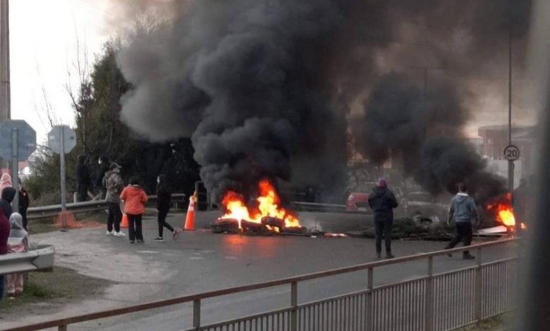 Manifestación de pescadores artesanales que instalaron barricadas incendiarias.