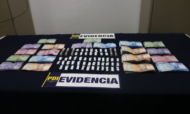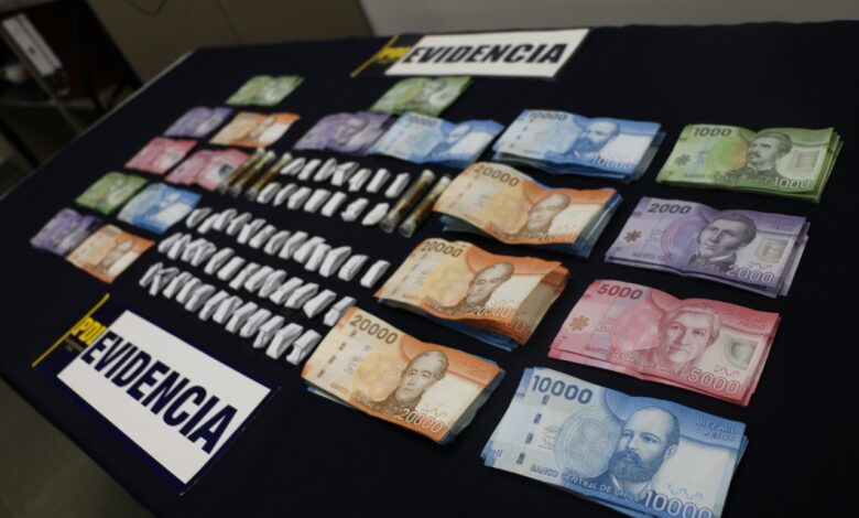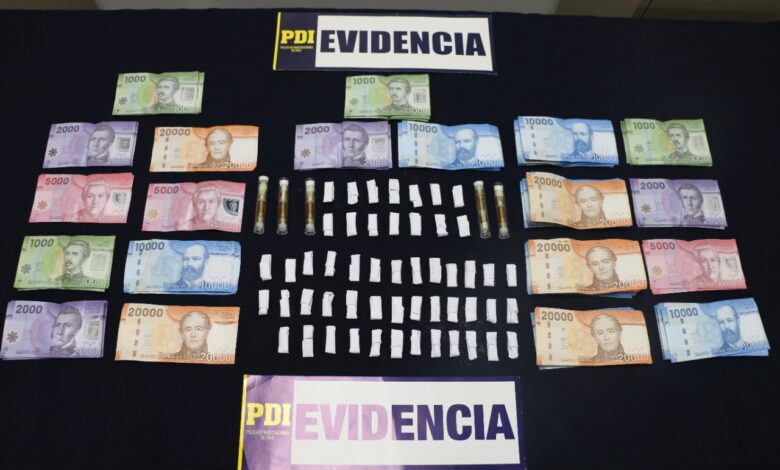La droga estaba distribuida en 54 envoltorios de papel blanco y cinco cilindros de vidrio, contenedores de Aceite de Cannabis para cigarrillos electrónicos y 731 mil pesos en dinero efectivo, producto de las ventas del alucinógeno.
