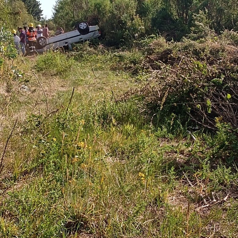Tras el impacto, el automóvil se salió de la pista y volcó al interior de un predio colindante con la carretera. Mientras que la camioneta quedó con daños de consideración.