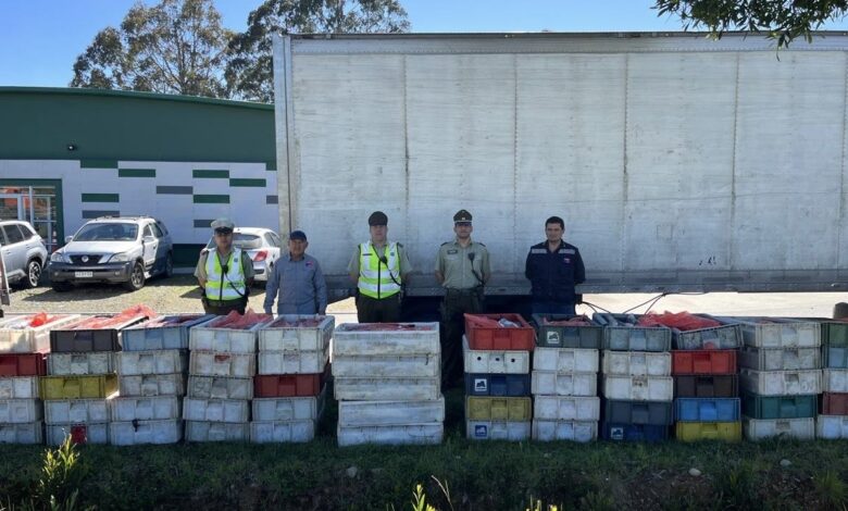 El vehículo fue trasladado hasta la Tenencia Carreteras Valdivia Norte, donde personal policial y de Sernapesca verificó la carga y confirmó el decomiso.