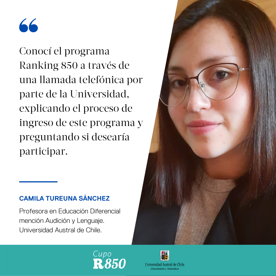 La Universidad Austral de Chile es una de las ocho casas de estudios superiores que participan en el programa de acceso inclusivo Ranking 850 (www.ranking850.cl), que permite generar oportunidades en condiciones de mayor igualdad de acuerdo al mérito académico.